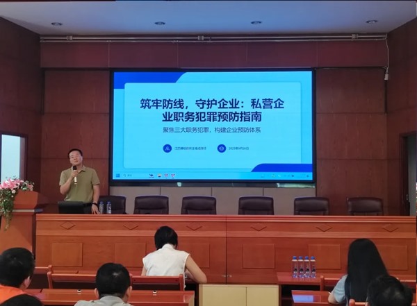 培訓(xùn)中,法律專家以私營企業(yè)常見的三大職務(wù)犯罪為核心,結(jié)合近年來真實的司法案例,從犯罪構(gòu)成、法律后果、司法認(rèn)定標(biāo)準(zhǔn)等維度進(jìn)行了深度解讀。授課過程中,專家不僅剖析了職務(wù)犯罪的隱蔽性與危害性,更針對性地提出了“事前預(yù)防、事中管控、事后應(yīng)對”的全鏈條防控思路,指導(dǎo)企業(yè)如何構(gòu)建科學(xué)有效的職務(wù)犯罪預(yù)防體系,幫助與會人員精準(zhǔn)把握合規(guī)管理的重點與難點。
